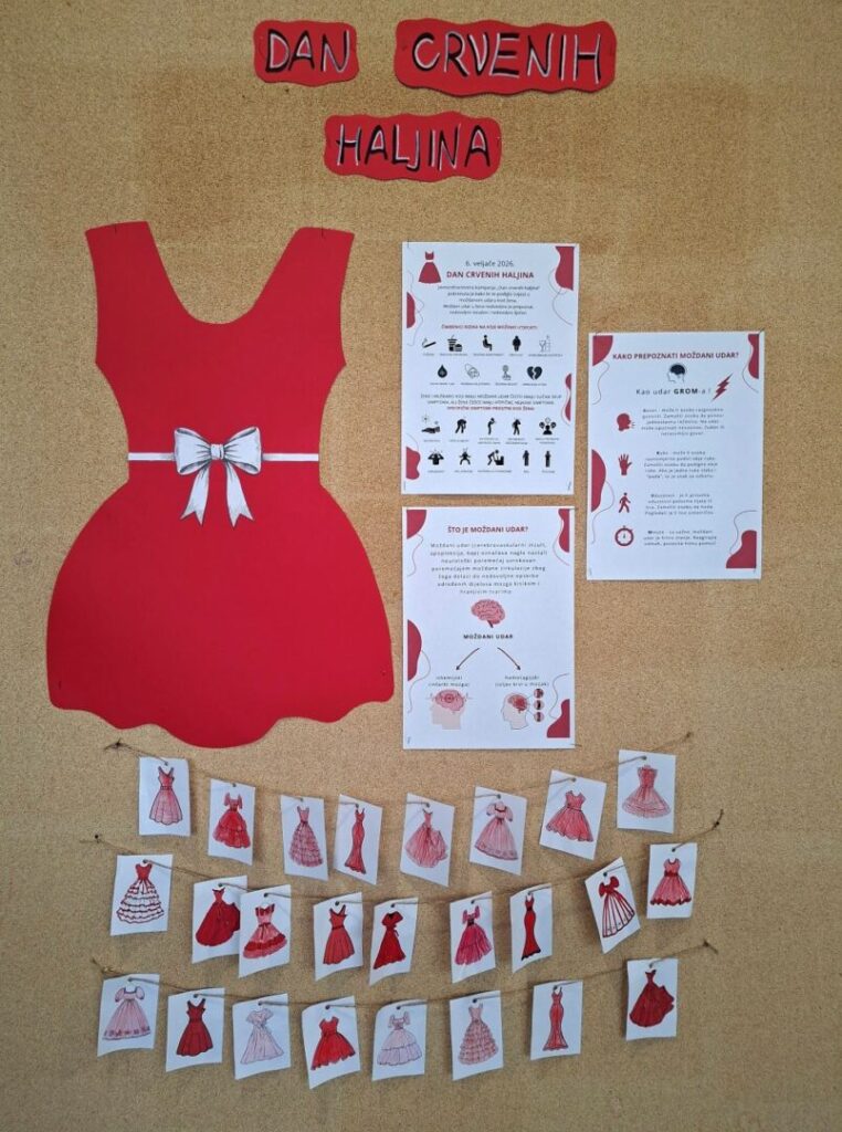 Naša škola se također uključila u obilježavanje Dana crvenih haljina, nosili su se crveni odjevni predmeti ili crveni detalji, bojale haljinice te uredio pano putem kojeg su učenici mogli doznati pokoji podatak više.