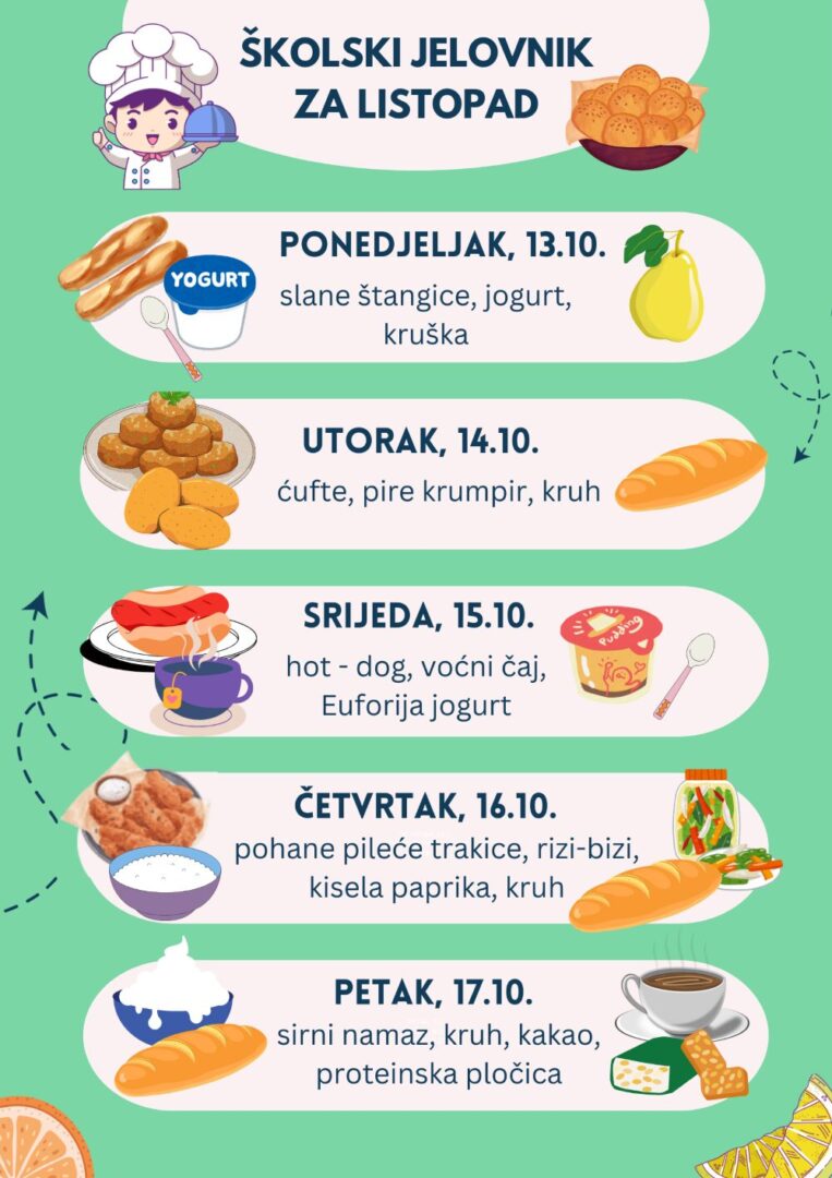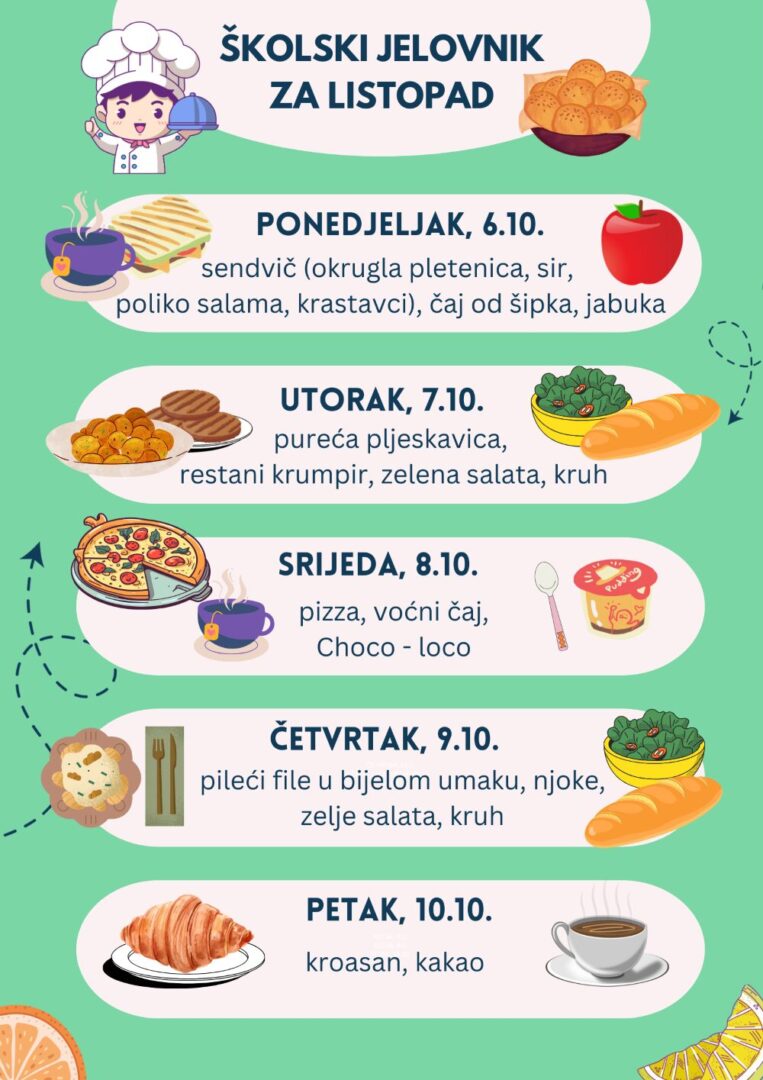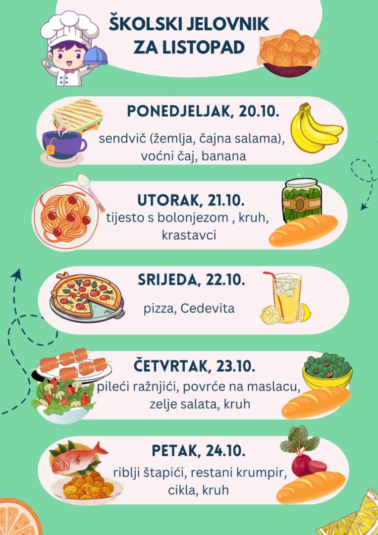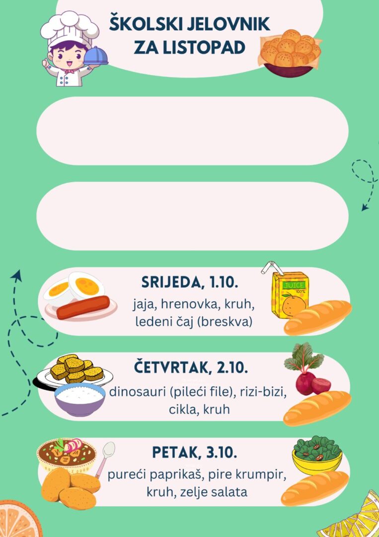 Jelovnik Napomena: Jelovnik je podložan promjenama. Školski jelovnik 2024.-2025. Jelovnik za rujan Jelovnik za listopad Jelovnik za studeni Jelovnik za prosinac Jelovnik za siječanj Jelovnik za veljaču Jelovnik za ožujak Jelovnik za travanj Jelovnik za svibanj Jelovnik za lipanj Školski jelovnik 2025.-2026. Jelovnik za rujan Jelovnik za listopad EU Učinkoviti ljudski potencijali EU Fondovi EU CARNET EU konkurentnost i kohezija