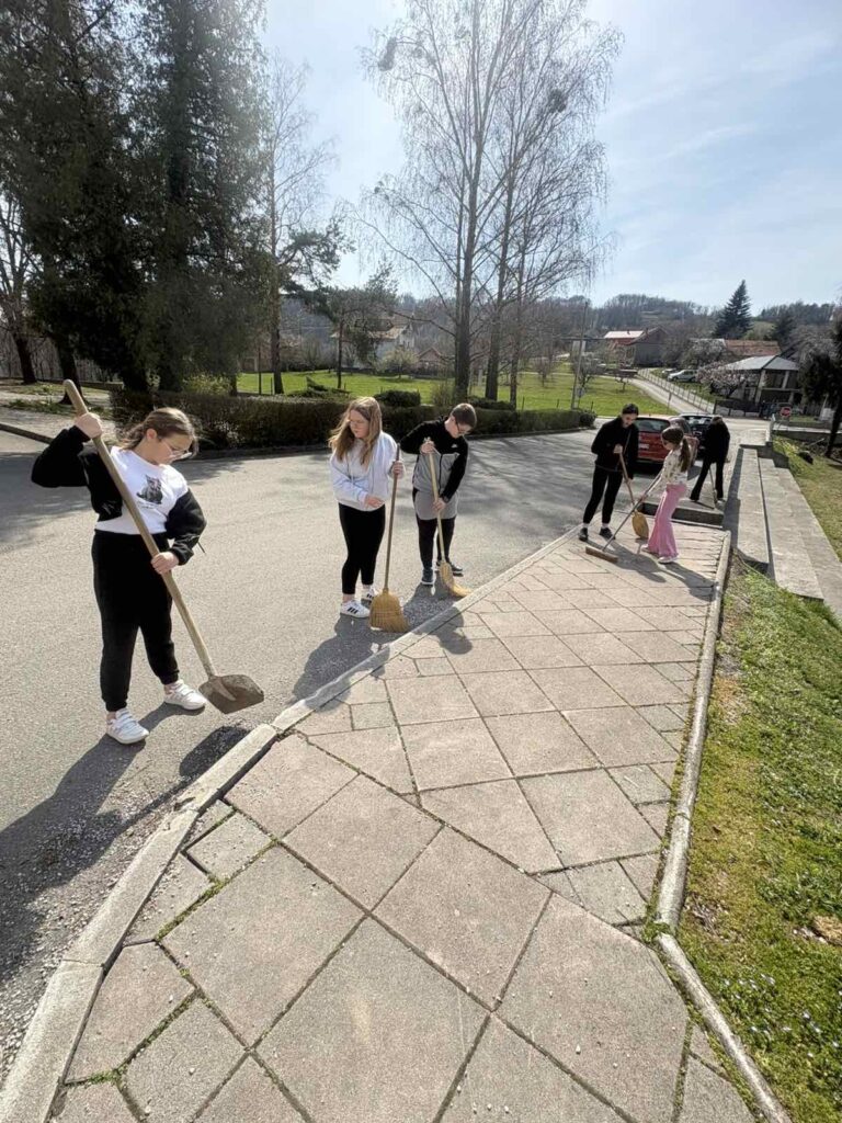 Dolaskom proljeća ljudi češće borave u prirodi i započinju s uređivanjem okoliša. Boravku na svježem zraku nisu odoljeli ni učenici naše područne škole koji su, u pratnji svojih učiteljica, bili jako vrijedni i uredili školsko dvorište.