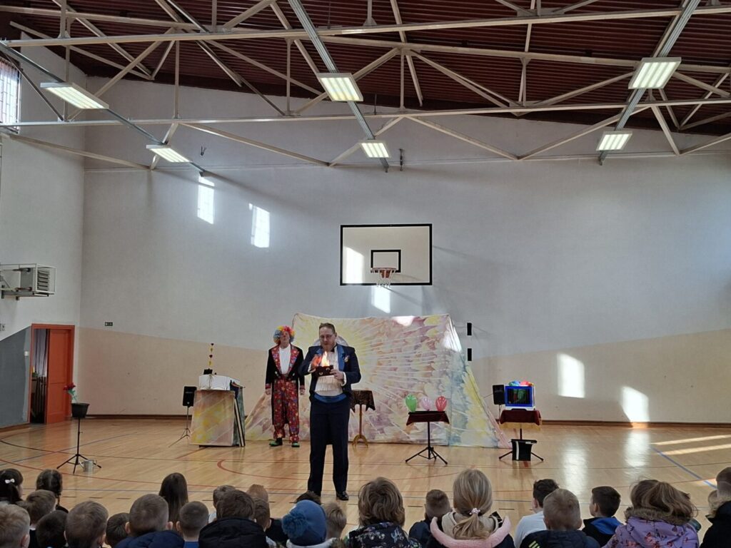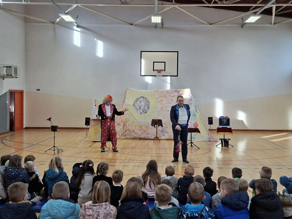 U ponedjeljak, 16.02.2026. u našoj matičnoj školi gostovao je Mak teatar s predstavom Šareni Gustav. Učenike nižih razreda, ali i naše male goste iz vrtića Miholjček, uveseljavao je interaktivnom predstavom, potičući djecu na sudjelovanje tijekom cijele predstave, a najzanimljiviji dio su bili mađioničarski trikovi mijenjanja boja, nestajanja ili izvlačenja mnoštva predmeta iz prazne kutije uz pratnju vesele glazbe.